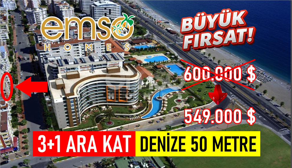KONYAALTINDA DENİZE 50 METRE 3+1 YENİLENMİŞ DAİRE